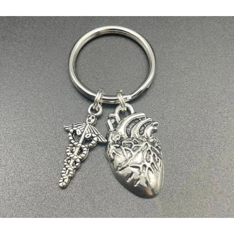 Anatomical Heart & Medical Caduceus Keychain, Medical, Cardiologist, Anatomy