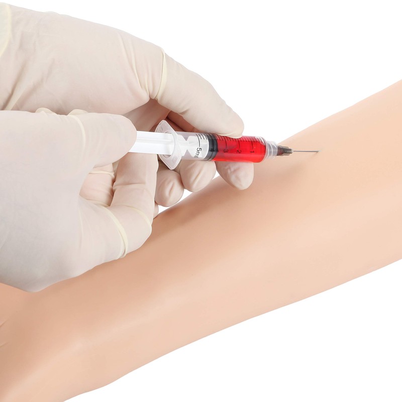 - WORKS LIKE THE REAL THING: The life-like skin and antecubital veins of this venipuncture practice arm provide a great hands-on learning experience. Upon correctly accessing the vein, you will be able to draw back blood, thanks to the artificial blood circulating through the venous system. You will feel like you are treating a live patient.