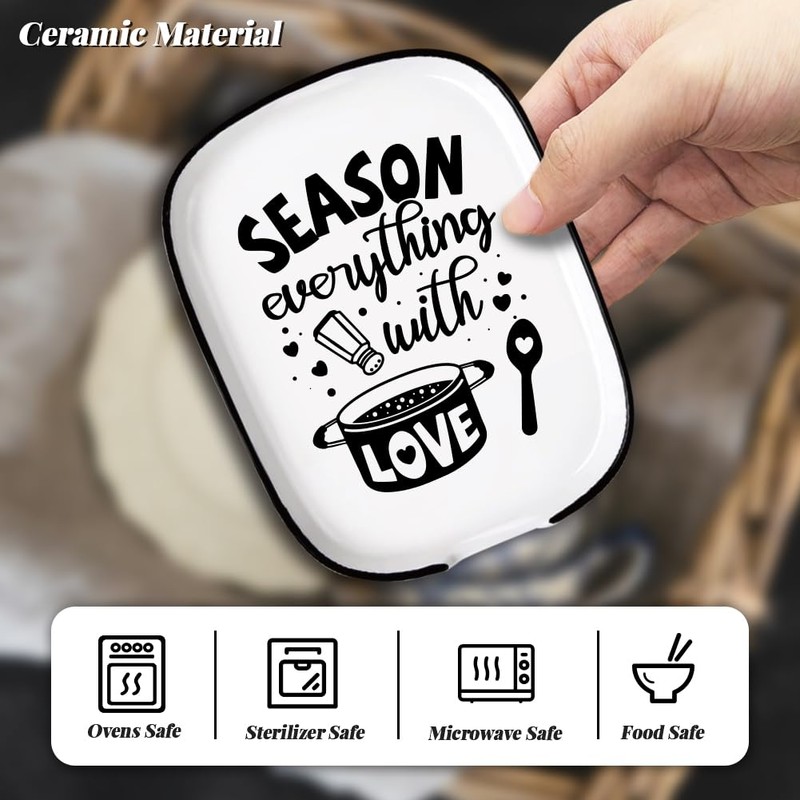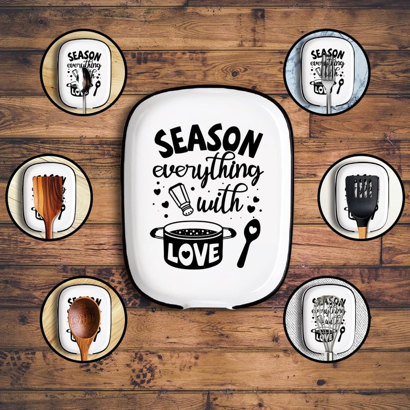 ANATTASOUL Keramik Löffel Rest 15 * 11.5cm,Küche Speisenaufzug Löffelhalter Keramik für Spatel, Zangen, Gadgets, Kaffeelöffel, Spoon Rest für Kochplatte, Küchentheke(Alles mit Liebe würzen)