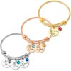 - Size and Material Info - Small Bangle fits 6.5"-7.25" inch wrist. Large Bangle fits 7.25"-8.25" inch wrist. Round Disc Charm, 1.375" inches (18mm). Copper-Framed Glass Crystal Birthstones. High Polished Glossy Finish Stainless Steel which is better quality than brass or alloy materials. No tarnish, no allergies. Handmade and personalized with laser engraving on the charm piece. Packed in a delicate jewelry gift box.