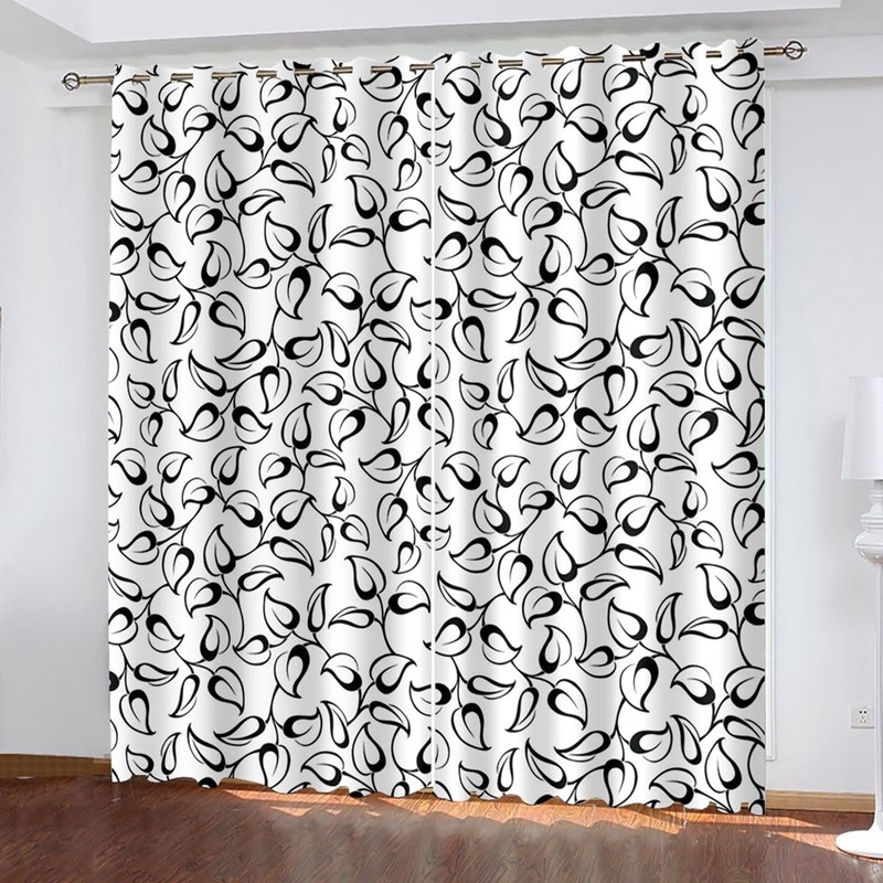 ANAZOZ Drapes Eyelet for Bedroom,2 x 34W x 72H IN,Curtains for Windows Blackout Set of 2 Branch and Leaf Pattern Curtains for Study Room Black White