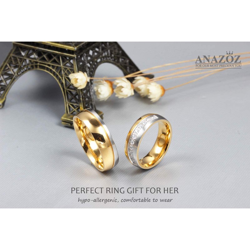 Anazoz Men's Ring Titanium 18K Gold Plated Wedding Ring Engagement Ring, Fashion Jewellery Partner Ring for Couples, Stainless Steel (Men), Gold Silver