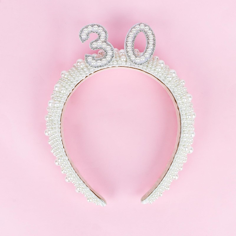 - Suitable Size: Suitable Size: The size of [30] birthday headband party decorations for her is 6.0 x 7.8 inches, made of white pearl and small rhinestones to let you look more attractive. Perfect for 30th party use, makes the most stunning on your special day