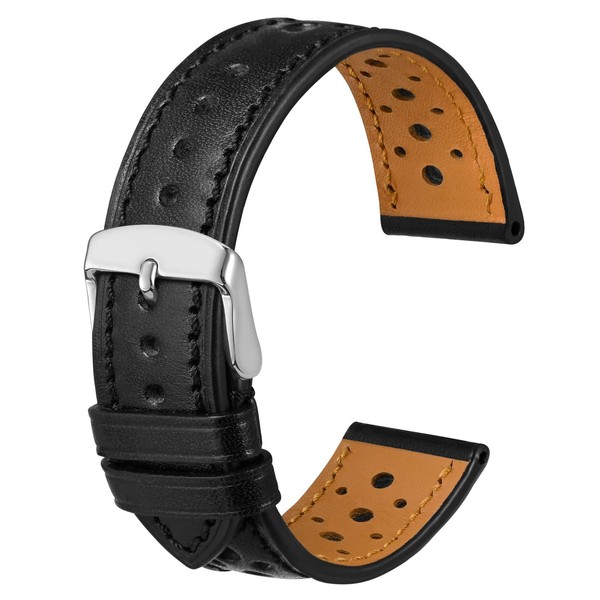 [Anbeer] レザー 時計バンド 20mm ラリースタイル ウォッチバンド 取付工具あり ブラック