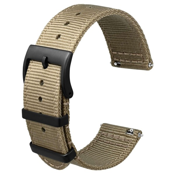 [Anbeer] Nylon Watch Band, Two-Piece Quick Release Replacement Strap with Metal Loop, 22 mm, No Gemstone