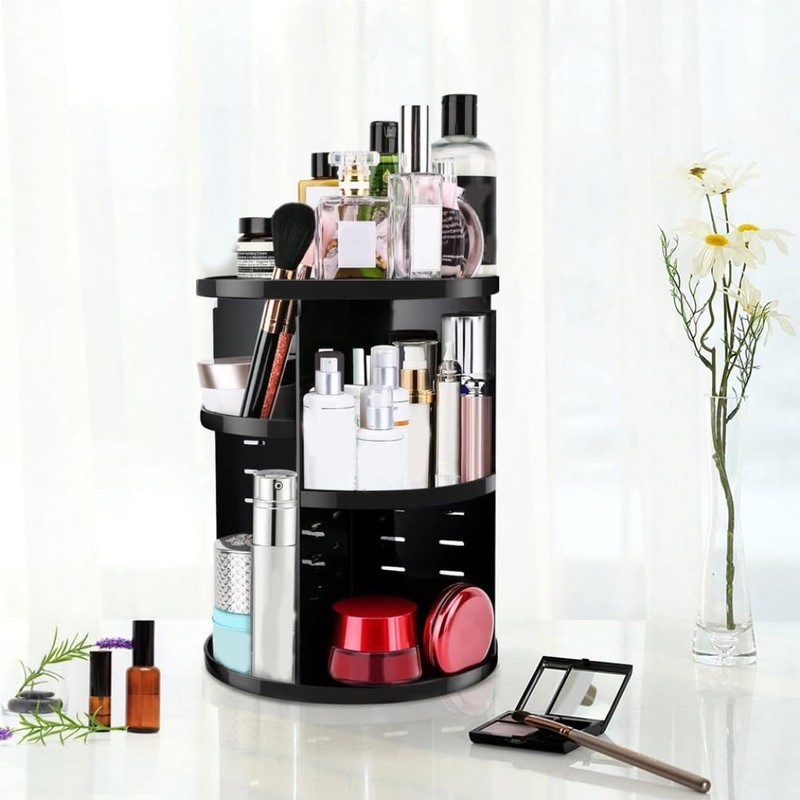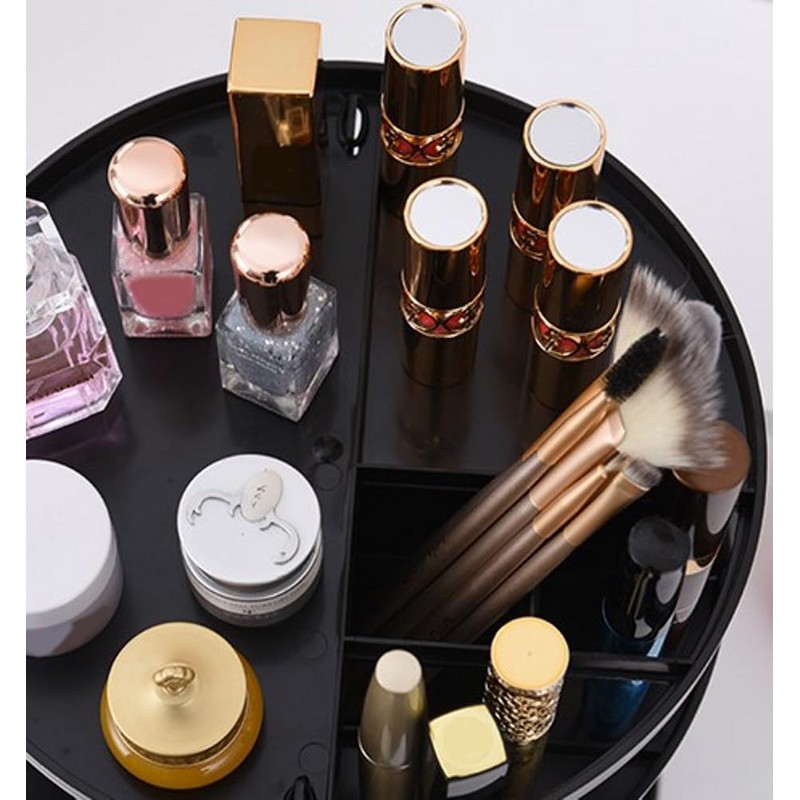 - 360度回転し、散らかりがちな化粧品を綺麗に整理して保管できる回転式メイクボックスです。 スキンケア製品、口紅、マニキュア、アイライナー、ネイルカラー、メイクブラシ、チーク、アイブロウ、スティックファンデーション、美容グッズ、ネックレスや指輪など、その他いろいろな小物、コスメ用品を収納できます。