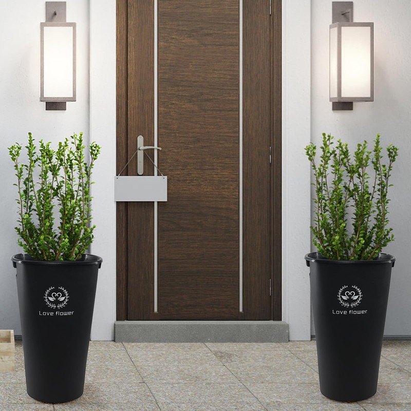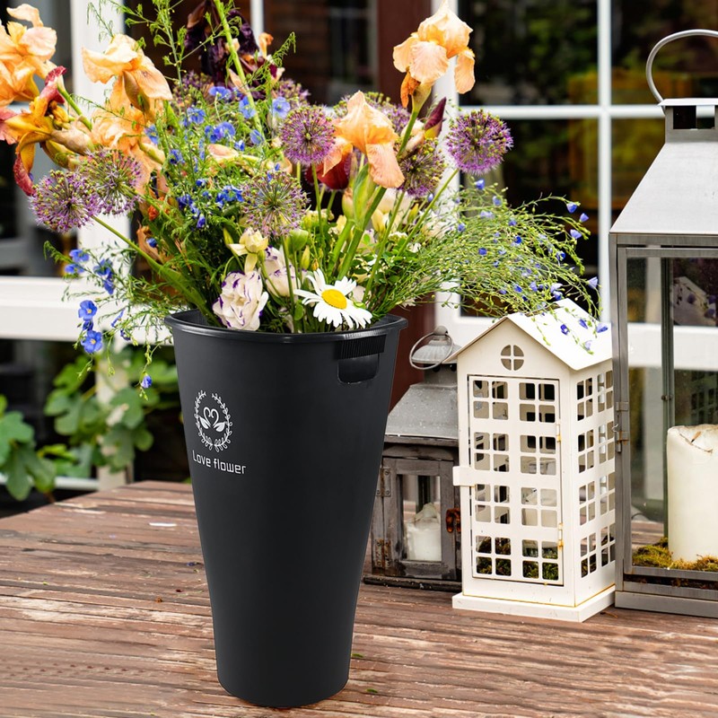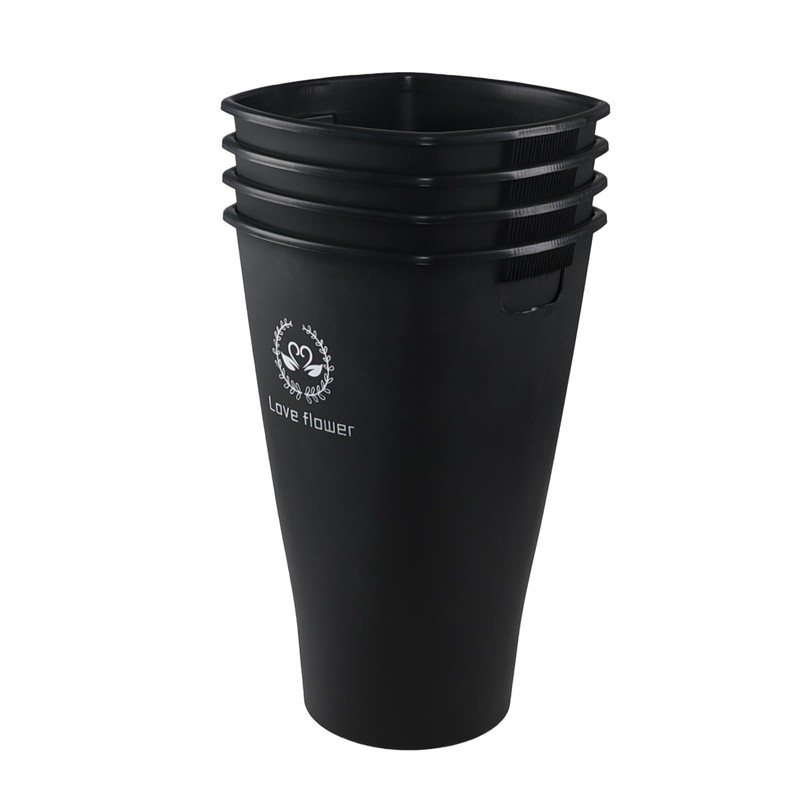 4 pack 20-inch black plastic flower buckets, durable and modern, great for use in farmhouses, flower shops, and gardens, use for flower arrangement and awakening