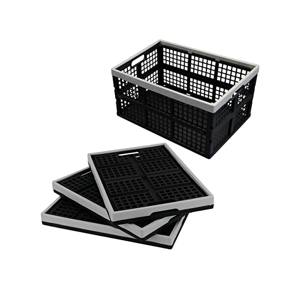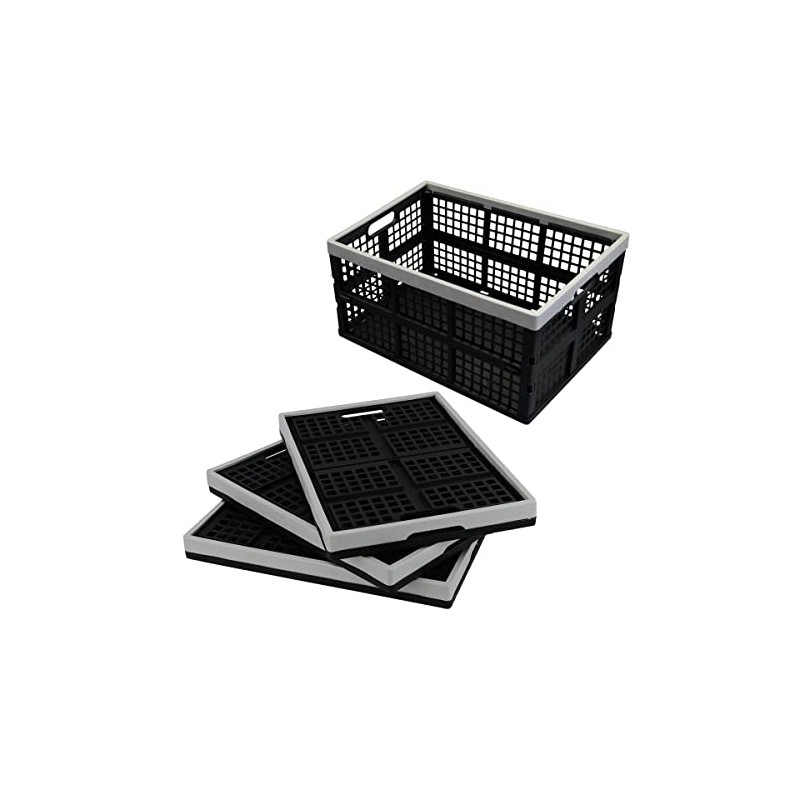 Anbers 42 L Plastic Collapsible Crates, Folding Storage Bins, 4 Packs