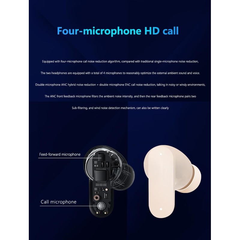 ANC TWS, Active Noise Cancelling Wireless Earbuds, Reduce Noise, Ear-in,longtime Playtime, IPX4 Waterproof, Deeper Bass, 4 ENC Mics, Comfortable Fit, Bluetooth 5.4 Ear Buds (Beige)