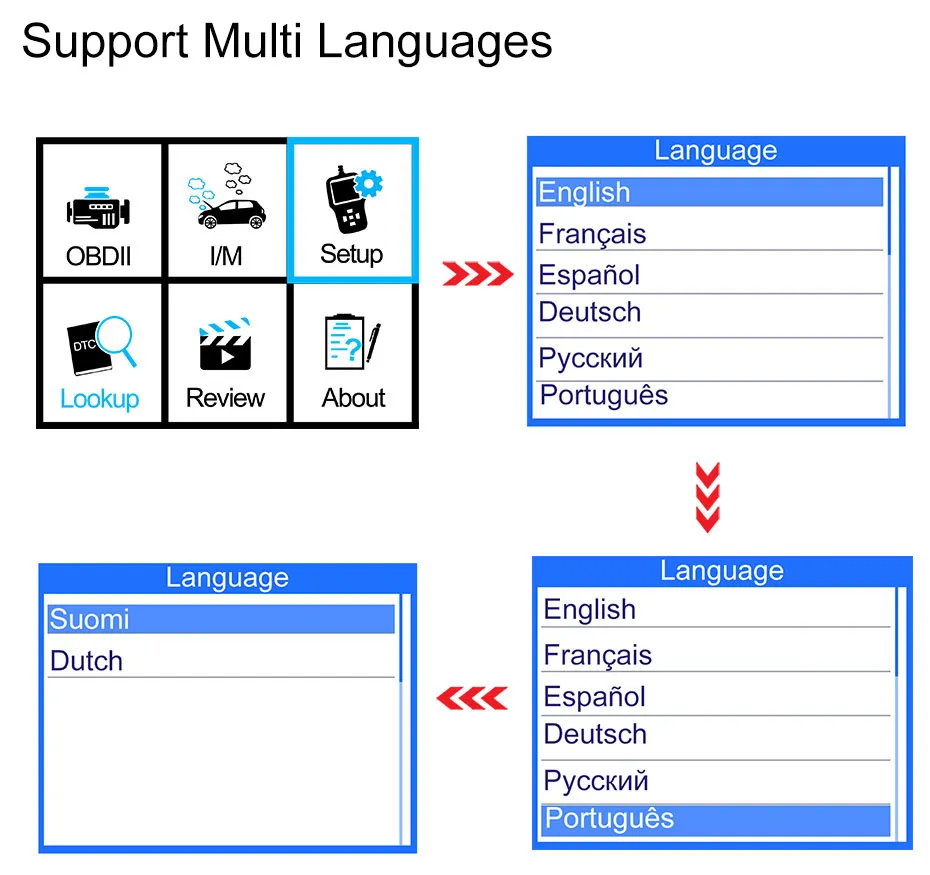 2, Hot key for I/M monitor readiness test, display engine system work status fast in 1-3 seconds.