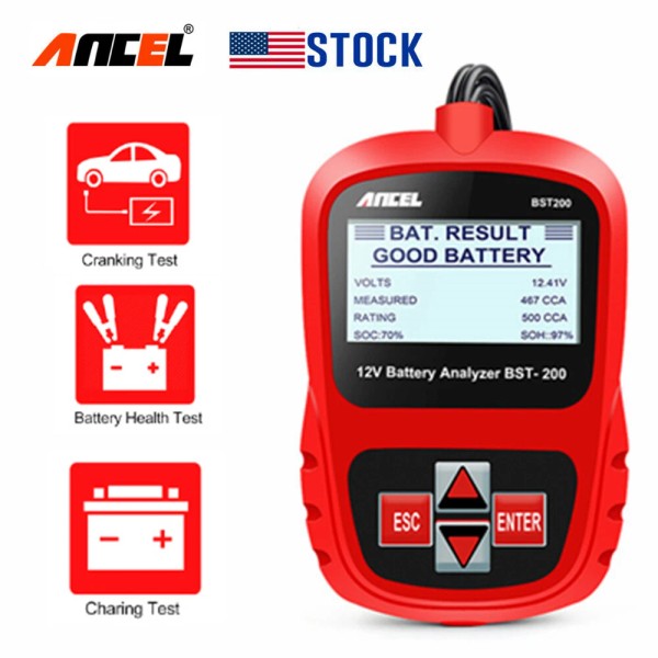 The latest BST200 12 Volt Automotive Battery Analyzer from ANCEL is dedicatedly developed to test 12V regular flooded, AGM flat plate, AGM spiral and gel batteries. It provides a quick, easy and affordable solution for technicians to view battery charging status, check battery health and detect faults.