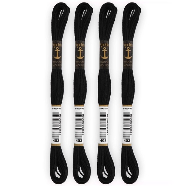 Anchor - 4 Stranded Cotton Mouliné Hand Knitting Yarn 100% Cotton Cross Stitch Canvas Black Ref 4635000-4EA_00403