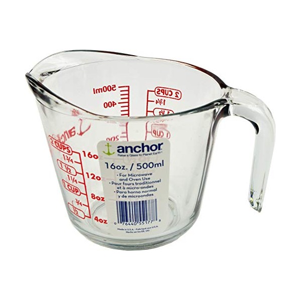 Anchor Hocking 2 Cup (16 Ounce) Glass Measuring Cup, clear glass with red lettering (Anc-9439)