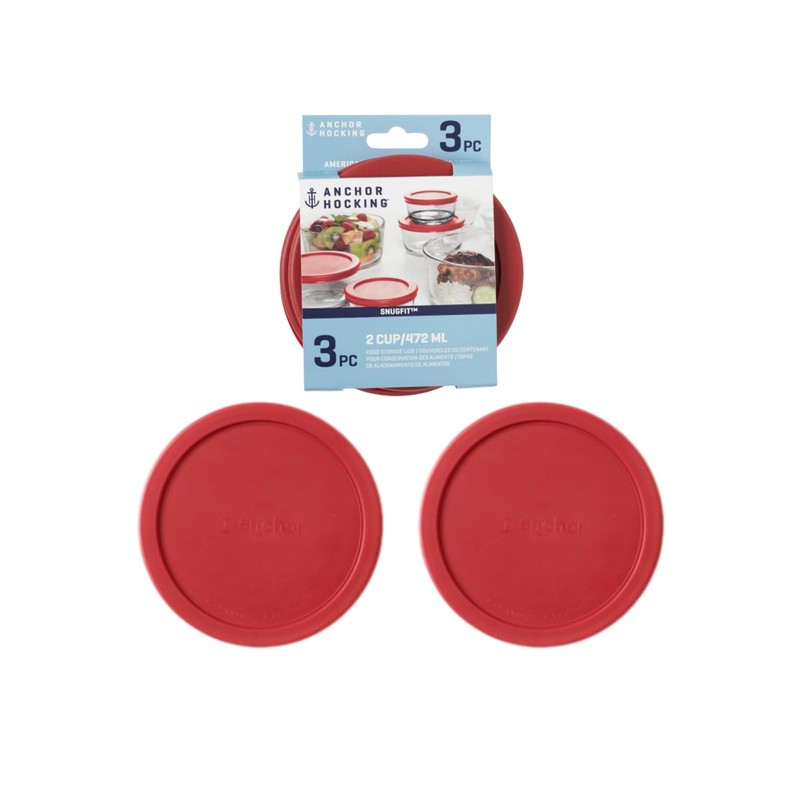 Anchor Hocking Classic Round Food Storage SnugFit Replacement Lids, Red, 2 Cup, Set of 3