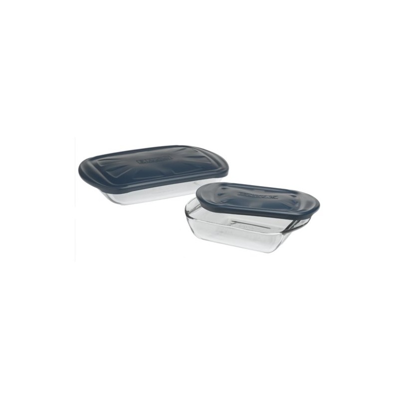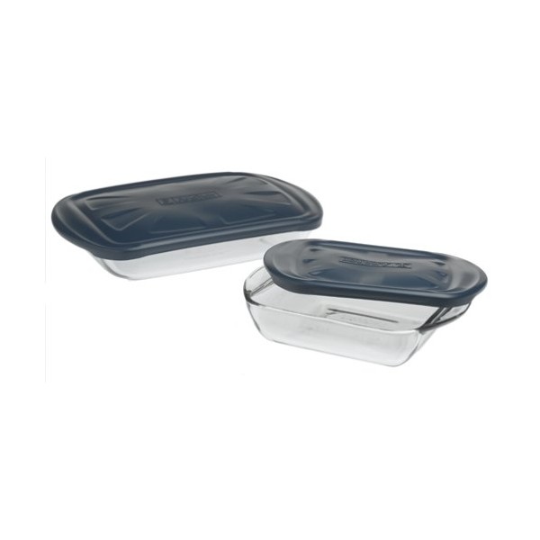4 Pc. (8" Square Cake Dish w/Blue Plastic lid and 3 qt. Bake Dish w/ Blue Plastic Lid)