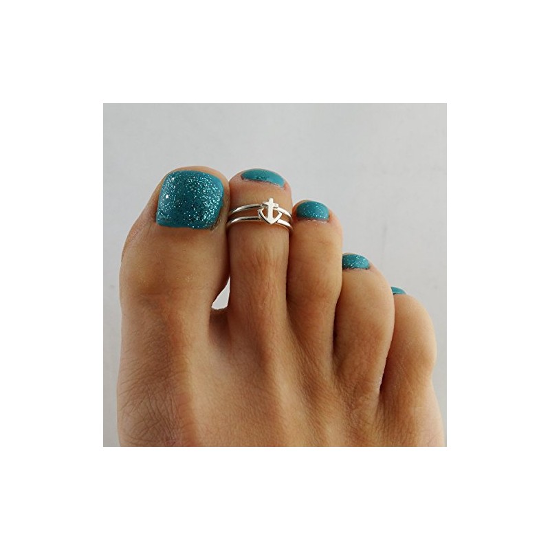 Anchor Toe Ring - 925 Sterling Silver - Adjustable Double Band Anchors Midi NEW