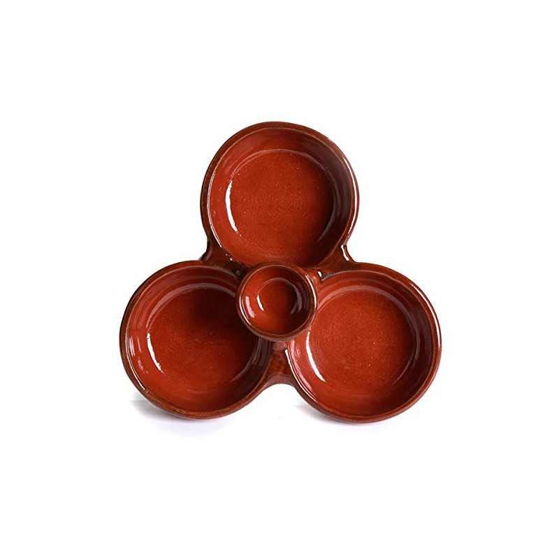 Ancient Cookware Mexican Clay Triple Appetizer Bowl