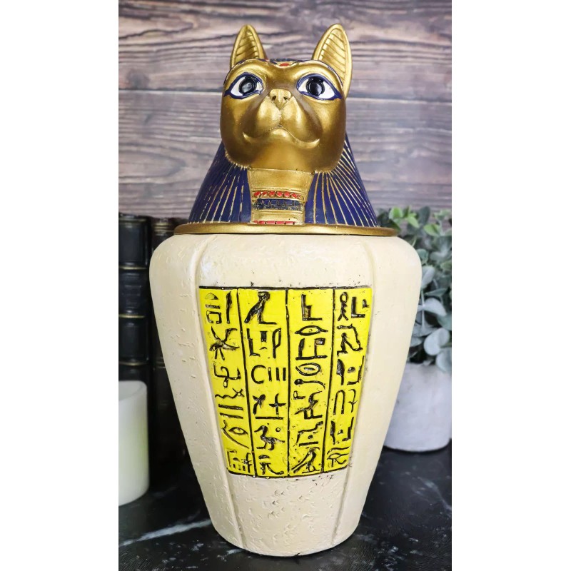 Ancient Egyptian Feline Cat Goddess Bastet Canopic Jar Memorial Urn Figurine