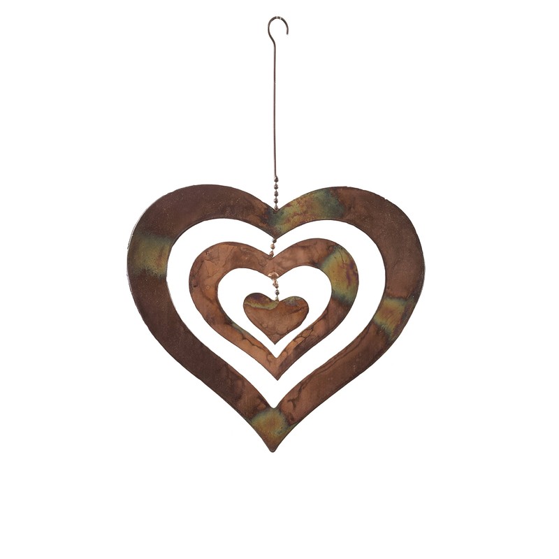 Ancient Graffiti Flame Triple Heart Spinning Heart Hanging, 9.5 by 9 by 9.5-Inch