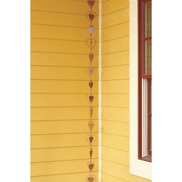 Ancient Graffiti Flamed Copper Heart Rain Chain, 4" x 96" x 4"
