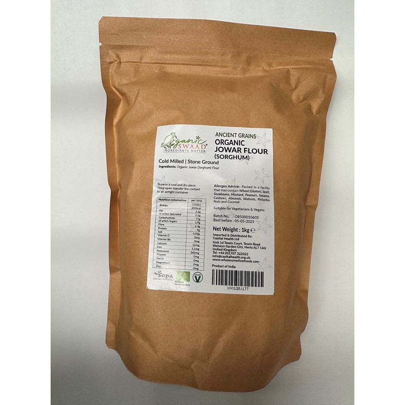 Ancient Grains Organic Sorghum (Jowar) Flour 1kg EU and India Organic Certified