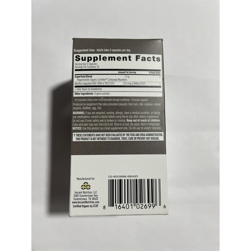 Ancient Nutrition Cordyceps Supplement 60ct Exp 2/8/26.