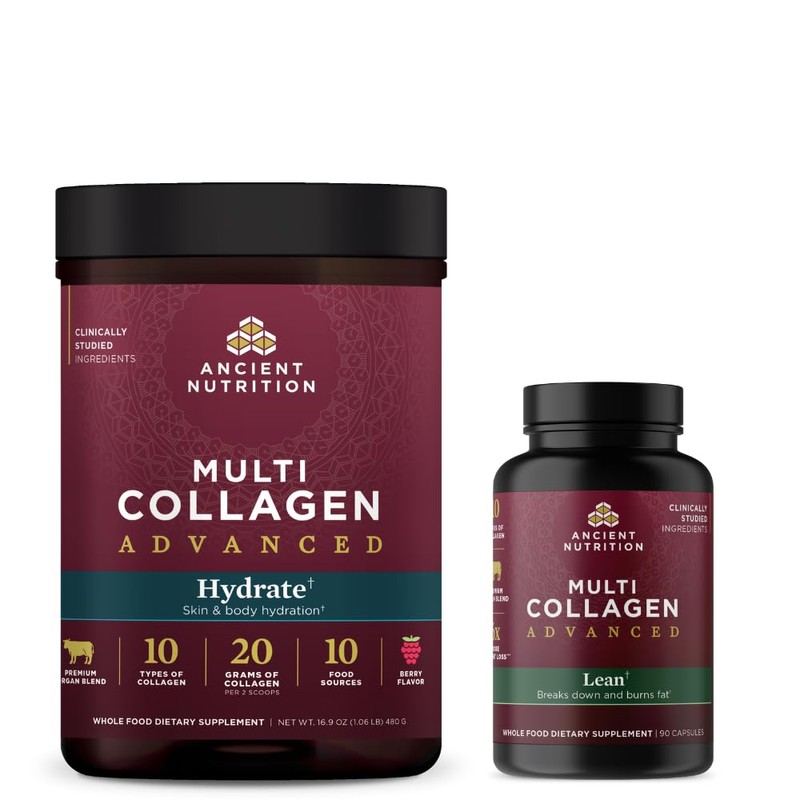 - You will receive (1) bottle of Multi Collagen Advanced Powder Hydrate, Mixed Berry and (1) Multi Collagen Advanced Capsules Lean by Ancient Nutrition