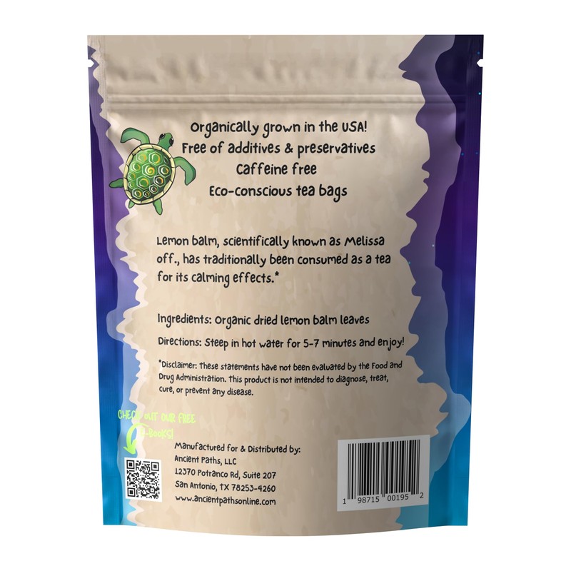 Ancient Paths Ancient Paths Organic Lemon Balm Herbal Tea - Nervous & Digestive Support - 100% Pure Dried Lemon Balm Calming Tea - Caffeine-Free Tea & Sustainable Tea Bags - USA Grown (20 Sachets)