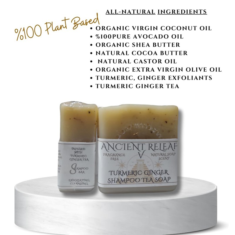 Ancient Releaf Turmeric Ginger Shampoo Tea Soap Bar,100% Vegan/plant based, Refreshing and Exfoliating, fragrance-free, natural soap scent 5oz bar