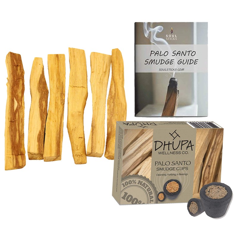 - Includes 6 Sticks of Palo Santo and 6 Palo Santo Smudge Cups: Palo Santo is a sacred South American holy wood known by Incas to promote joy, reduce stress, and enhance clarity. Burn Palo Santo to cleanse your space of negative energies and bring a spiritual calm to your surroundings.
