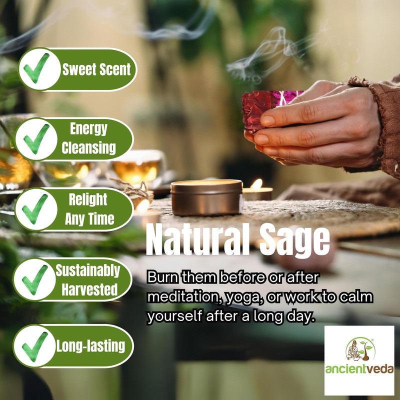 - USE FOR YOGA AND MEDITATION Smudging with sage is a powerful tool in spiritual practice. Burning sage improves awareness and focus. It commonly used to practice mindfulness and transcendental meditation.
