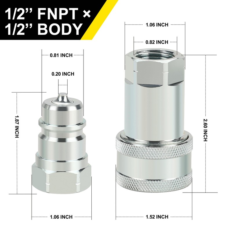 - Rated for up to 3600 PSI, these couplers can handle high-pressure hydraulic systems, providing a secure connection even under demanding operating conditions.