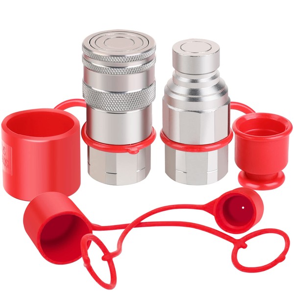 ANCIMOON 1/2’’ NPT Skid Steer Hydraulic Couplers, Bobcat Flat Face Quick Connect Fittings with 2PCS Dust Covers