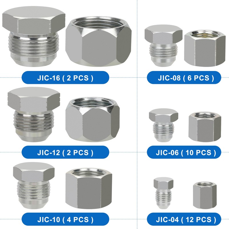 - JIC (37 Flare) caps and plugs kit comes housed in an extreme-duty waterproof plastic case. It features 72 carefully selected, high-quality caps and plugs covering an extensive range of repair solutions in sizes -4 (1/4), to -16 (1).