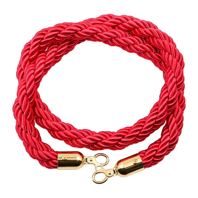 ANCLLO 1.5m Red Twisted Queue Rope Divider Mass Control Support Queue Post Barrier Rope with Gold Hook