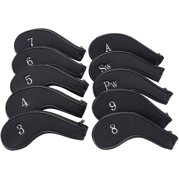 ANCLLO 10 Pack Zipper Golf Club Iron Head Covers Iron Covers
