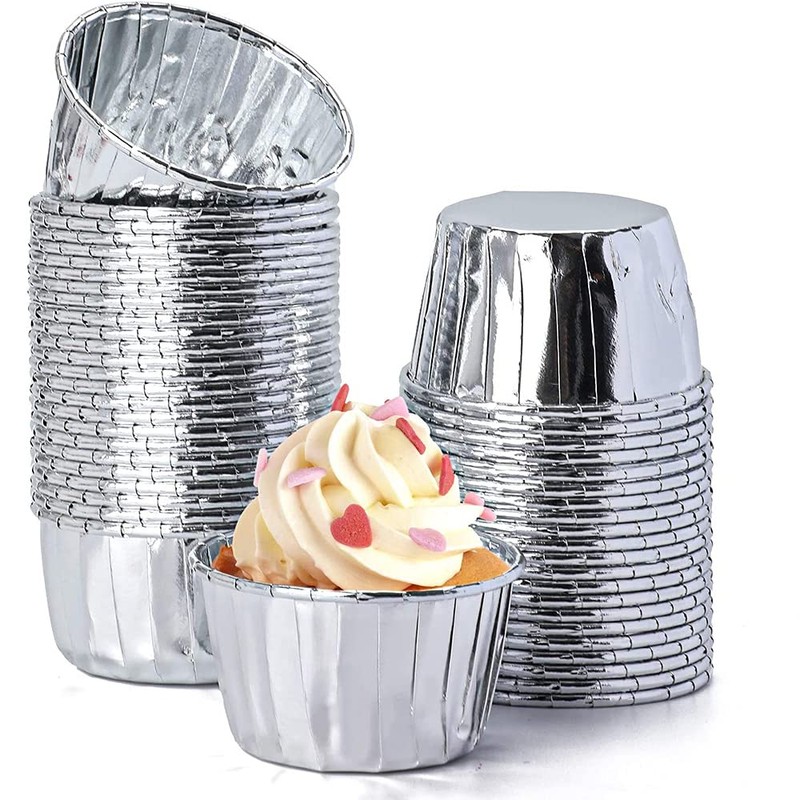 ANCLLO 50Pcs Party Hippo Cupcake Cups Foil Muffin Liners Gold Cupcake Baking Cups Little Baking Cups-Silver