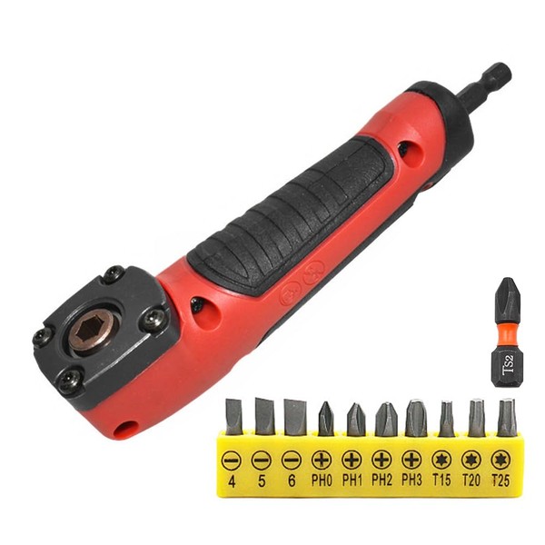 ANCLLO Electric Screwdriver Kits Repair 90 Degree Corner Device Screwdriver Socket Adapter with 10 Drill Bit Sets Right Angle Attachment