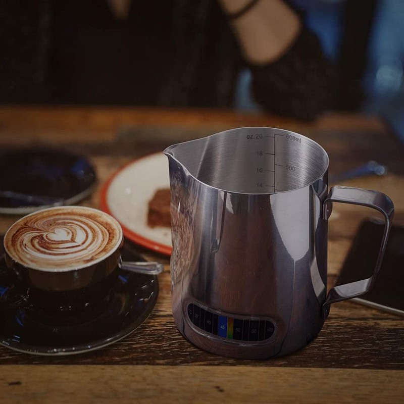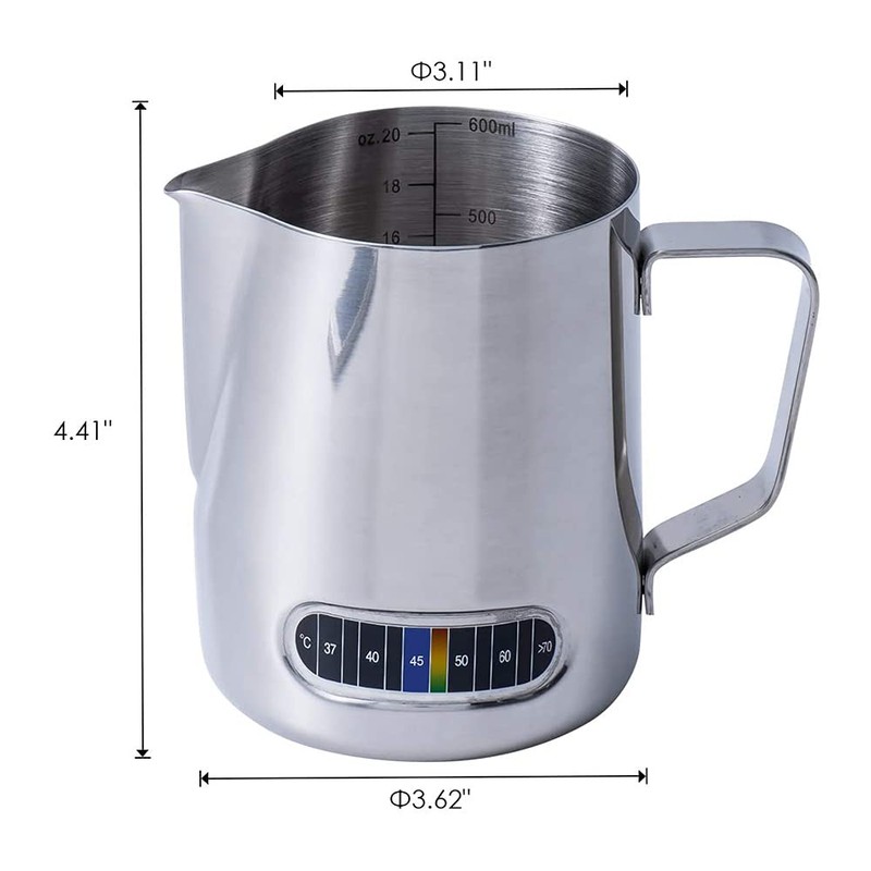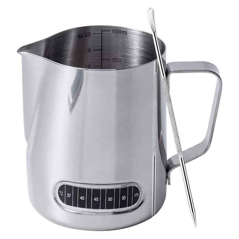 ANCLLO Milk Frothing Pitchers with Integrated Thermometer,Latte Art Jug Stainless Steel Creamer Temperature Espresso Steaming Pitchers 20 oz (600 ml)