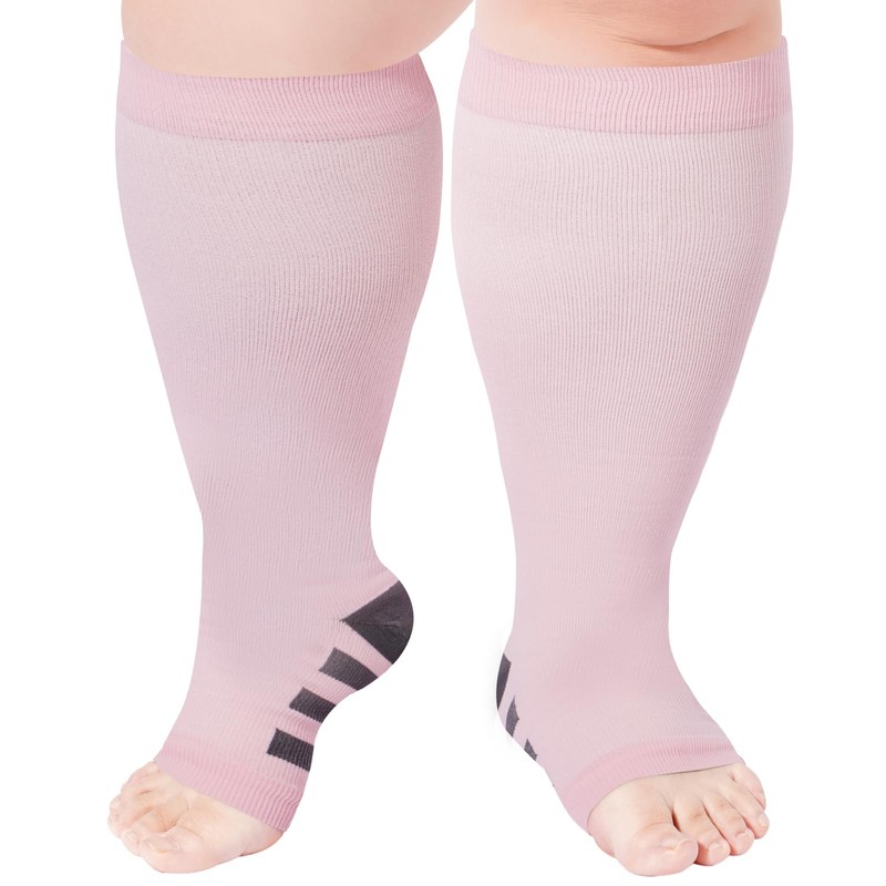 - 【Perfect Fit for Wide Calf】Extra large & wide calf size (1XL-6XL) for calf 10 to 28 inches circumference, ankle size up to 16 inches. And more comfortable than normal size open toe compression socks, these toeless compression socks are able to bring you strong leg support and long lasting graduated compression, as well as ultra comfortable wear of lightweight and breathable.