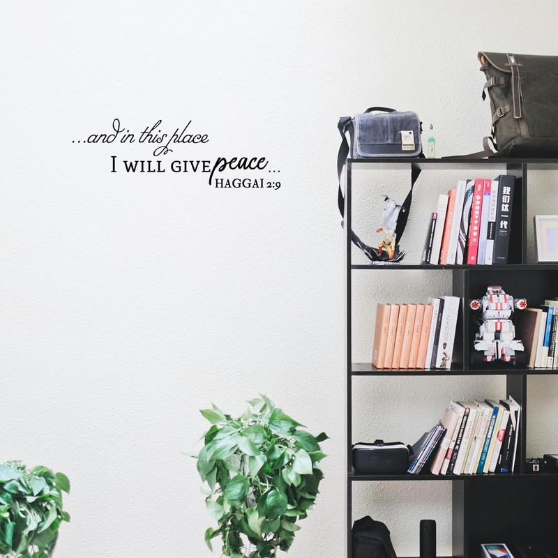 and in This Place I Will Give Peace Haggai 2:9 - Christian Quotes Pure Black Vinyl Wall Decal Carved Art Letters Religious Scripture Motto Decoration