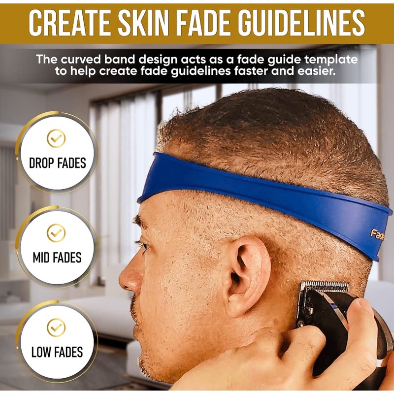 Save Money & Time. Are you tired of trying to create even Fade guidelines? How about trying to line up your neck? The Fade Guide has your back. Our innovative design allows you to to create fade guidelines. The edges of the band make it easier to move the band up and down and the silicone helps to reduce some slippage. The silicone Fade Guide band has a circumference of 21.5 inches, suitable for most head sizes.