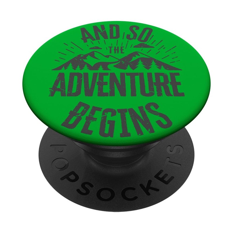 And So Adventure Begins Funny Camping RV Tent Happy Camper PopSockets Standard PopGrip