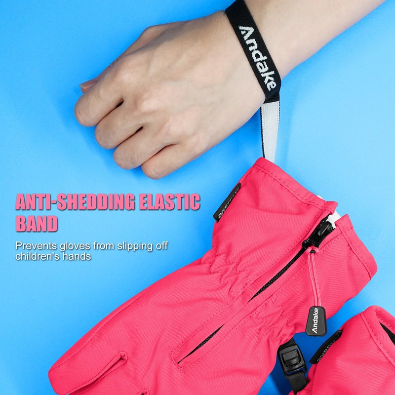 - đ ăThoughtful DesignăOur improved gloves feature a convenient on/off zipper designïŒeasy to put on and take off. An elastic anti-loss rope on the wrist, reducing the chance of losing them. Since its launch,our product has been well-received by customers.Our gloves have soft PU leather on the palm and thumb for a secure hold. đAnti-lost buckles keep them together. Elastic Rib Cuff blocks wind and snow, maintains shape. Adjustable cuff line provides snug fit for kids' wrists.