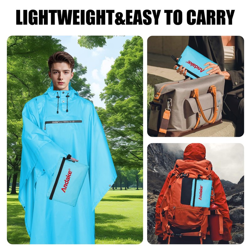 Andake Waterproof Durable Rain Poncho,Reusable Rain Jacket for Outdoor Activities and Emergencies,Lightweight, Wrinkle-Resistant Rain Gear with Transparent Viewing Window, for Men and Women