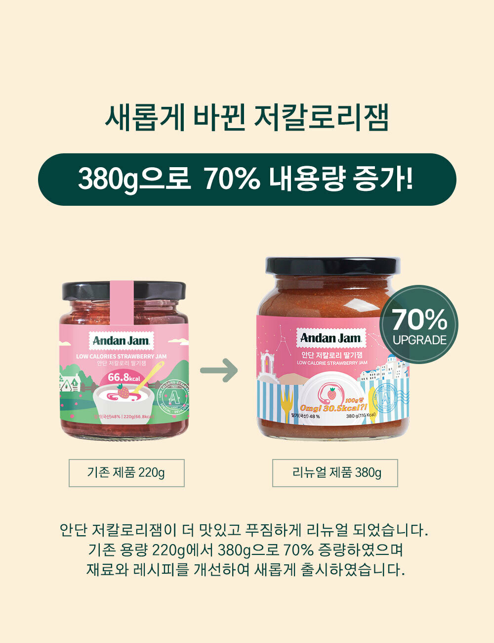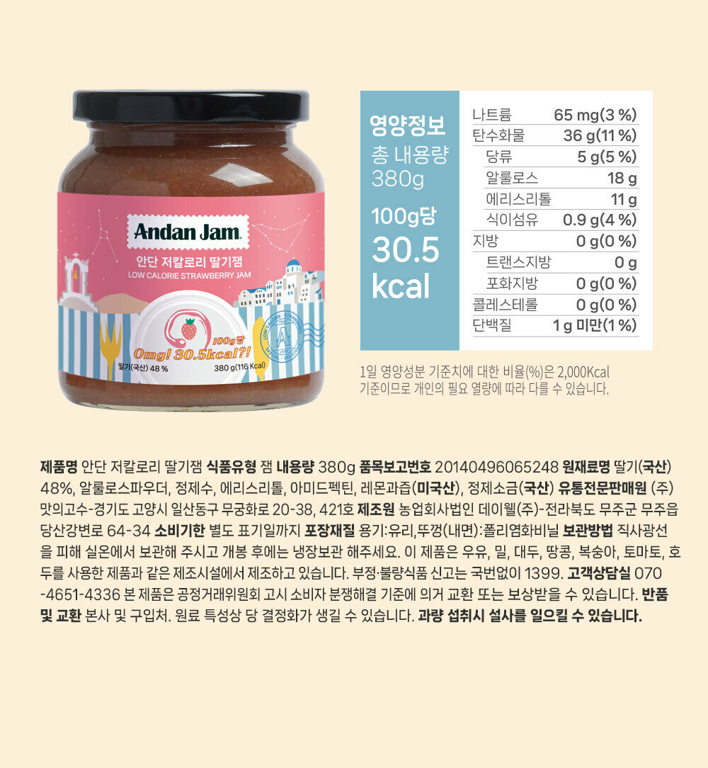 안단 저칼로리 딸기잼 380g