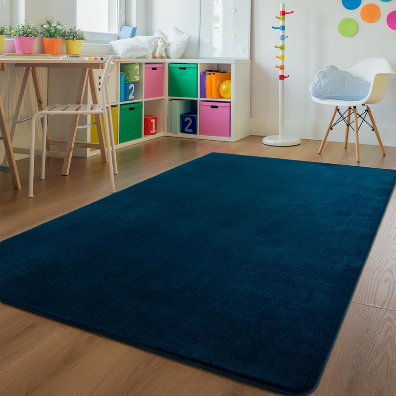Andecor Soft Area Rug, 4x6 Navy Blue Washable Rugs for Living Room Bedroom, Indoor Fluffy Carpets for Dorm Boys Girls Kids Room Nursery Home Decorations