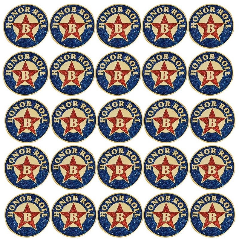 Anderson's Red and Blue Glitter B-Honor Roll Lapel Pin Pack, Set of 25, Stude...