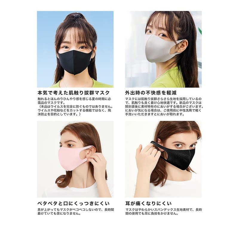 • マスクは軽くて通気性・伸縮性が優れた高機能素材を使用しているので、安心していつも快適に過ごせます。マスクには肌触り拔群さらさら生地を採用しているので、肌触りも良く着け心地快適です。新品のマスクは開封直後に素材特有のにおいがする場合がございます。においが気になる場合は、ご使用前に中性洗剤で軽く手洗いいただきますとにおいが取れます。