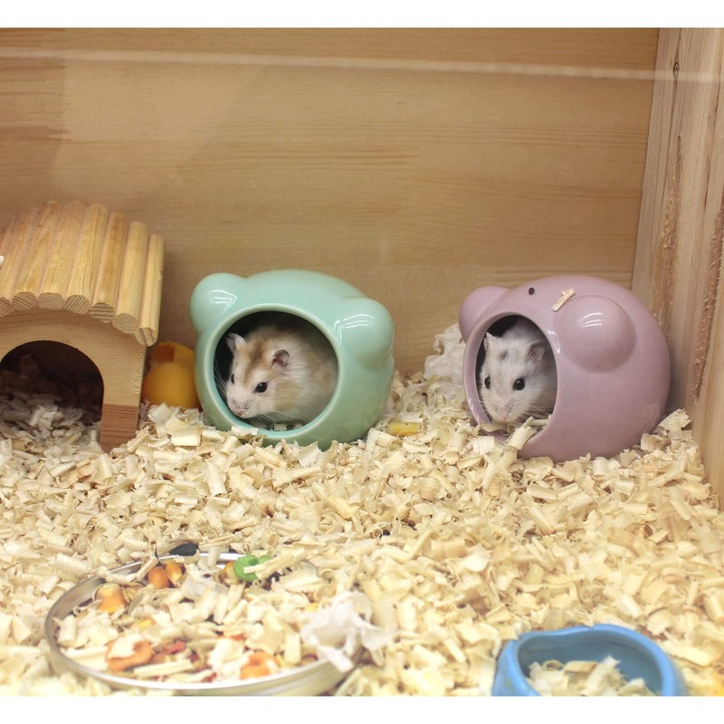 - ❤ Cute Animal Design: The whole ceramic nest looks like a hamster with two cute ears, very cute, and there are two colors of blue and pink to choose from. Provide shelter for your pets, the interior is spacious and can accommodate many small pets to rest, warm in winter and cool in summer.